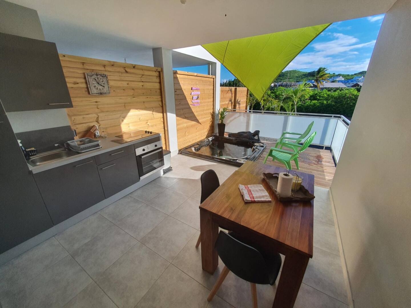 Nichée dans la résidence Alamanda, cette adresse combine charme tropical et tranquillité. Piscine, transats, parasols et douche extérieure composent un espace intime, propice à la détente sous le soleil des Caraïbes.